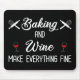 Baking And Wine Make Everything Fine. This funny quote baking accessory is a great gift for a man or woman who loves to bake in the kitchen and is a wine lover. Also perfect for a baker or a bakery worker. If you're a home baker, love the culinary arts, and love to prepare delicious bread, cookies, muffins, cakes or cupcakes in the oven, then this humourous design is for you.