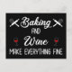 Baking And Wine Make Everything Fine. This funny quote baking accessory is a great gift for a man or woman who loves to bake in the kitchen and is a wine lover. Also perfect for a baker or a bakery worker. If you're a home baker, love the culinary arts, and love to prepare delicious bread, cookies, muffins, cakes or cupcakes in the oven, then this humourous design is for you.