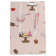 A cute pink and brown themed baking and cooking utensils pattern. Bakery cooking themed illustrations include a rolling pin, whisk, piping bag, desserts, spatulas, spoons and more.