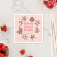 Festive and whimsical Christmas theme napkin for your holiday party featuring hand drawn illustration of holiday cookies. The text says "baking spirits bright."