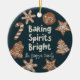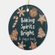 Fun and whimsical Christmas ornament featuring hand drawn illustration of holiday cookies. The text says "baking spirits bright."