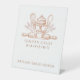 Baking utensils baker bakery pedestal sign featuring a detailed line art illustration of classic baking tools, wheat accents, and a cake stand in warm copper tones on a white background. Designed for countertop and table display, this sign creates a refined artisan bakery look that feels both welcoming and elevated. A beautiful addition for farmers market booths, bakery counters, dessert tables, and small baking businesses, helping present your setup in a cohesive and polished way that pairs seamlessly with matching bakery cards, labels, and packaging.