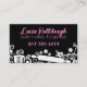 Pretty yet bold business card featuring baking utensils - rolling pin, measuring cup, electric beaters and flowers - and your choice of colours and fonts throughout, perfect for a home baking or bakery store or pastry chef.