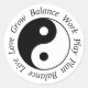 Balance - Work Play Plan Live Love Grow - white sticker with black script lettering and yin yang symbol.
