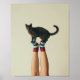 Balancing Cat on Striped Socks, Black Cat Poster