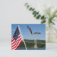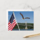 A post card with a Bald Eagle and the American Flag with the Mid Hudson Bridge in the background.