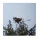 A photograph of an American Bald Eagle that is perched atop a Pine Tree.