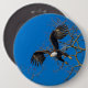 A bald eagle drops from its branch and begins to fly. A striking image with a vivid blue sky backround.