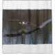Bald Eagle in Flight Shower Curtain. A bald eagle with a wingtip grazing the surface of a lake. Photo by Richard Lee.
