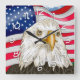 Bald Eagle in front of American Flag Patriotic Art Square Wall Clock