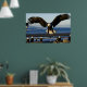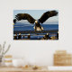 Bald Eagle ocean poster Comes with a beautiful Flying Bald Eagle in the air over the ocean with other eagles on the ground around him with the beach in the beach ground.this is a beautiful photo on this poster