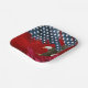 Bald Eagle in flight with an American abstract flag on a red leather background.
