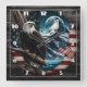 Bald Eagle on Branch With Mountain and Flag Square Wall Clock