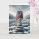 Bald Eagle On Cairn With American Flag Card