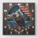 Bald Eagle Perched by Mountain and American Flag Square Wall Clock