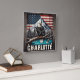 A bald eagle rests on a branch over water, with a backdrop of mountains and the American flag, embodying national pride and natural beauty.