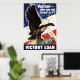 This vintage World War II poster features a bald eagle on a stack of war bonds, with a red, white, and blue background. It declares, "Victory -- now you can invest in it! Victory Loan". Celebrate American and WW2 History with this digitally restored vintage war poster product from The War Is Hell Store.