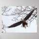 A magnificent bald eagle with wings fully spread as it launches from a tree limb.