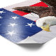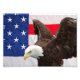 A portrait of a male bald eagle with the american flag. This image was taken of a bald eagle that can't be released into the wild and is used for educational purposes. Photo taken by Debbie Quick of Debs Creative Images. If you like what you see, check out other photographs taken by Debbie at www.debscreativeimages.com