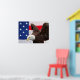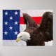 A portrait of a male bald eagle with the american flag. This image was taken of a bald eagle that can't be released into the wild and is used for educational purposes. Photo taken by Debbie Quick of Debs Creative Images. If you like what you see, check out other photographs taken by Debbie at www.debscreativeimages.com