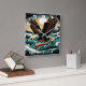 An eagle soars gracefully over a fish in the vast expanse of the ocean, showcasing the beauty of nature in action.