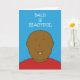 A cartoon of a smiling man, accompanied by the words 'Bald is beautiful'. The image has a bright blue coloured background.