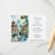The soft, artistic style captures the essence of an exotic watercolor garden luxury celebration, making it a perfect addition for couples planning a travel themed outdoor summer event or an overseas seaside wanderlust gathering. The inclusion of a QR code allows guests to easily access additional details online, adding convenience to its refined design.