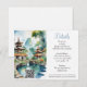 Complete your wedding stationery suite with this beautifully designed details card inspired by a Bali Indonesia destination wedding. Featuring a serene watercolor illustration of temple rooftops, lush greenery, and a peaceful garden pond with a graceful bridge, the design reflects the calm beauty of an Asian garden scenic paradise setting.