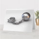 A heavy metal ball and chain with an opened shackle on an isolated studio background
