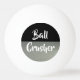 A silver and black ping pong ball with the text "Ball Crusher". It makes a great gift for the pro ping pong player in the family.
