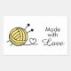 * NOTE *  You can customise the colour of the yarn by changing the background colour. A ball of yarn with a pair of knitting needles. The yarn's loose end forms a heart. The phrase reads: "Made with Love".