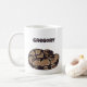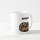 This coffee mug features a realistic style illustration of a coiled ball python snake in dark brown and tan. It's ready to be personalised with a name in dark brown lettering. The graphic and name appear on both sides of this mug. Makes a great gift for pet snake owners.
