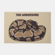 This welcome mat eatures a realistic style illustration of a coiled ball python snake in dark brown and tan. It's ready to be personalised with a name in dark brown lettering. Makes a great gift for pet snake owners.