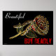 A Ball Python Snake curled around a red and gold Rose poster for Snake lovers.dangerous beauty collection. gift idea.