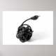 A power cable wrapped up into a ball isolated on a white background with the terminus in sharp focus sticking out of the ball.