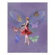 A ballerina twirls on her toes in a flowing red and black costume. She is surrounded by colourful butterflies in hues of green, blue, pink, gold, and brown. The background of the image is a muted violet containing the large muted wings of a butterfly. Customise with your own caption, name, or monogram.