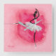 Ballerina silhouette at the barre with a white tutu and pink watercolour background