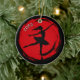 Modern ballerina dated photo ornament. Red brushstroke circle and ballerina silhouette in black. Add a photo to the back.