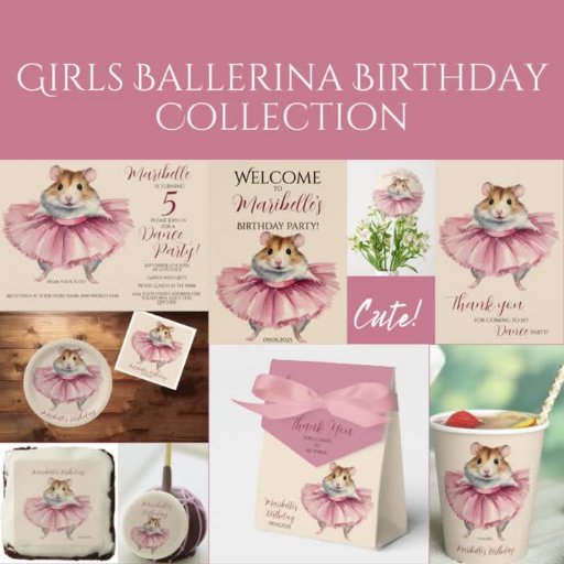Ballerina Hamster Girls Birthday Party Invitation