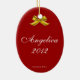 Beautiful dancing ballerina holding a nutcracker personalised double sided ceramic Christmas ornament! The front of this lovely ornament features a holiday scene of a ballerina dancing in a ballroom and holding up a nutcracker. This is a lovely gift for friends, family or someone who loves the nutcracker or ballet. Available in different sizes and shapes, and other languages. For other designs of holiday ballerina greeting cards and gifts please visit our shop!