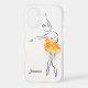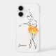 Ballerina Rose Ballet Dancer Personalized Name iPhone 17 Phone Cases feature a line illustration of a ballerina with a pretty orange and pink rose as a skirt. Personalized with your name by editing the text in the text box provided. Designed by ©Evco Studio www.zazzle.com/store/evcostudio