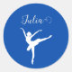 Ballerina silhouette in white and cobalt blue (0047AB). It comes with an elegant script. Graceful design by GDJ and Alma Wad. Personalise this classic round sticker with a name.