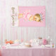 Pink and gold ballerina princess baby shower banner with adorable princess wearing pink tutu, pearls and pretty pink and silver crown on a beautiful pink and gold background. This pink and gold baby shower banner is easily customised with your text in the font style and colour and wording of your choice. You can also change the background colour.