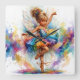 Enhance your collection with this enchanting and vibrant artistic print, designed to bring a touch of magical elegance to any space. The illustration captures a young ballerina fairy, her delicate, iridescent wings shimmering with soft pastel hues. She wears a striking rainbow-colored tutu, layered in rich shades of turquoise, green, orange, purple, and red, paired with gold-laced pointe shoes