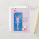 This lovely little ballerina dressed in a purple and white costume is in an On Pointe position and reaching towards the sky surrounded by gorgeous pink hibiscus blossoms on this ballet themed image. She has flowers in her strawberry blonde hair. Customise by adding a caption, name or monogram to the product.