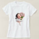 Whimsical ballet girl embraces a pink bouquet in soft pastel tones; a charming illustration ideal for spring apparel, kids wear, and gift-worthy tees.