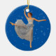 With snow flakes falling around her, this little ballerina dances into your hearts at Christmas on this ornament.