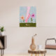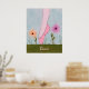 A single foot stands en pointe in the watercolor sketch on this poster print. Dancing among pinkish-purple and yellow flowers in a green meadow against a blue sky, the dancer wears a deep pink toe shoe and pale pink tights. The customisable text can easily be changed to say whatever you like or can be deleted altogether. From my original digitally created image.