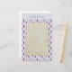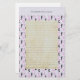 Pretty ballet themed stationery with parchment coloured lined paper laid over top. Designed with a ballet pattern which contains images of a tutu, ballet dress and ballet slippers in pink watercolor. Along with black silhouetted ballet shoes and ballerina all in a repeating pattern. Elegant and classy on a lavender purple background.