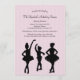 A dance recital invitation with a pink background and three silhouette ballerina figures. (Pix). The card is easy to customise with your wording, font, font colour and choice of six paper types.<br/><br/>Not exactly what you're looking for? All our products can be custom designed to meet your needs at no extra charge.<br/><br/>Simply contact us at askcottonlamb@gmail.com<br/><br/>Coordinating products available: